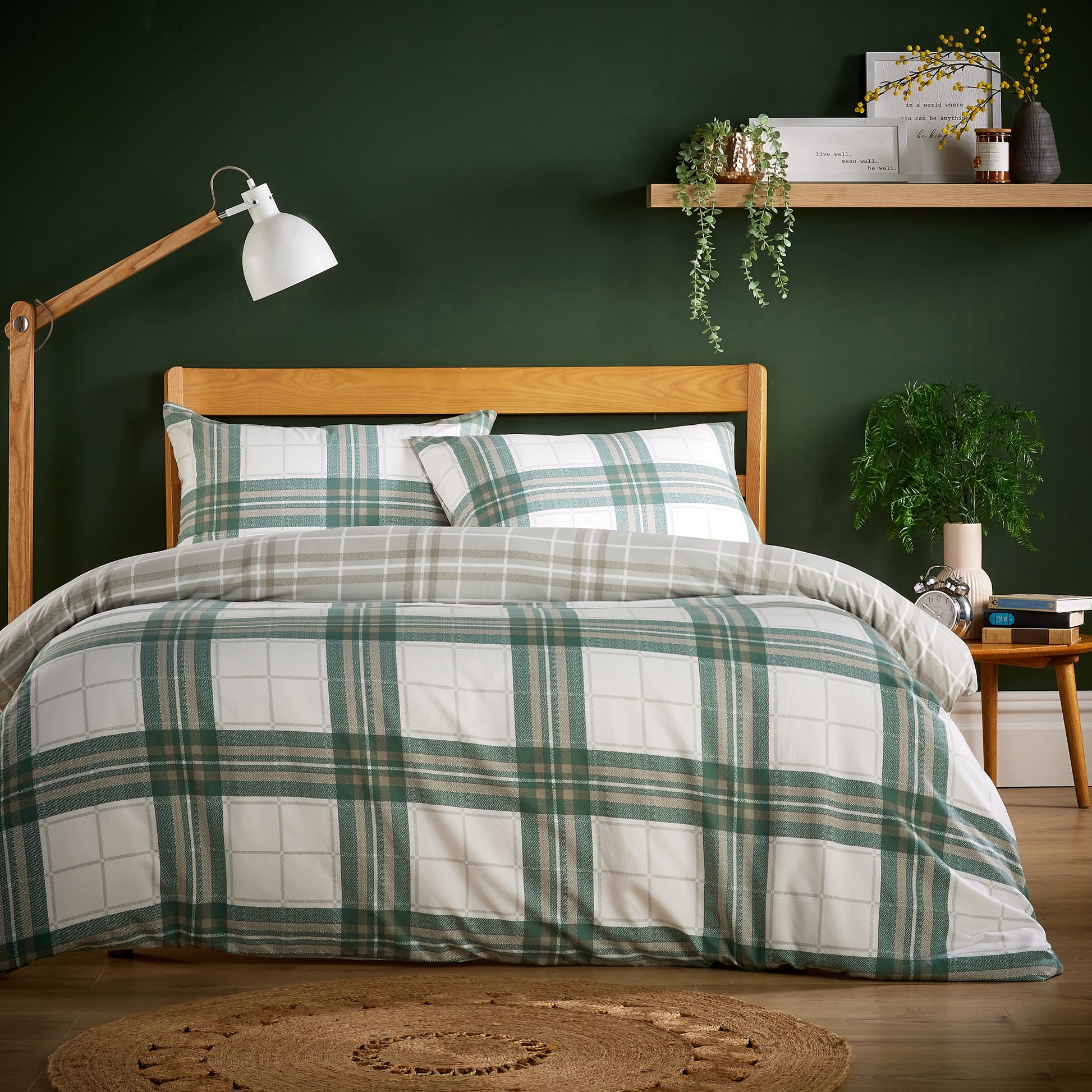 Alba Sage Green Super Soft Flannel Duvet Cover Set with Pillowcases Warm & Cosy Quilt Bedding in Multiple Sizes Available by OLIVIA ROCCO