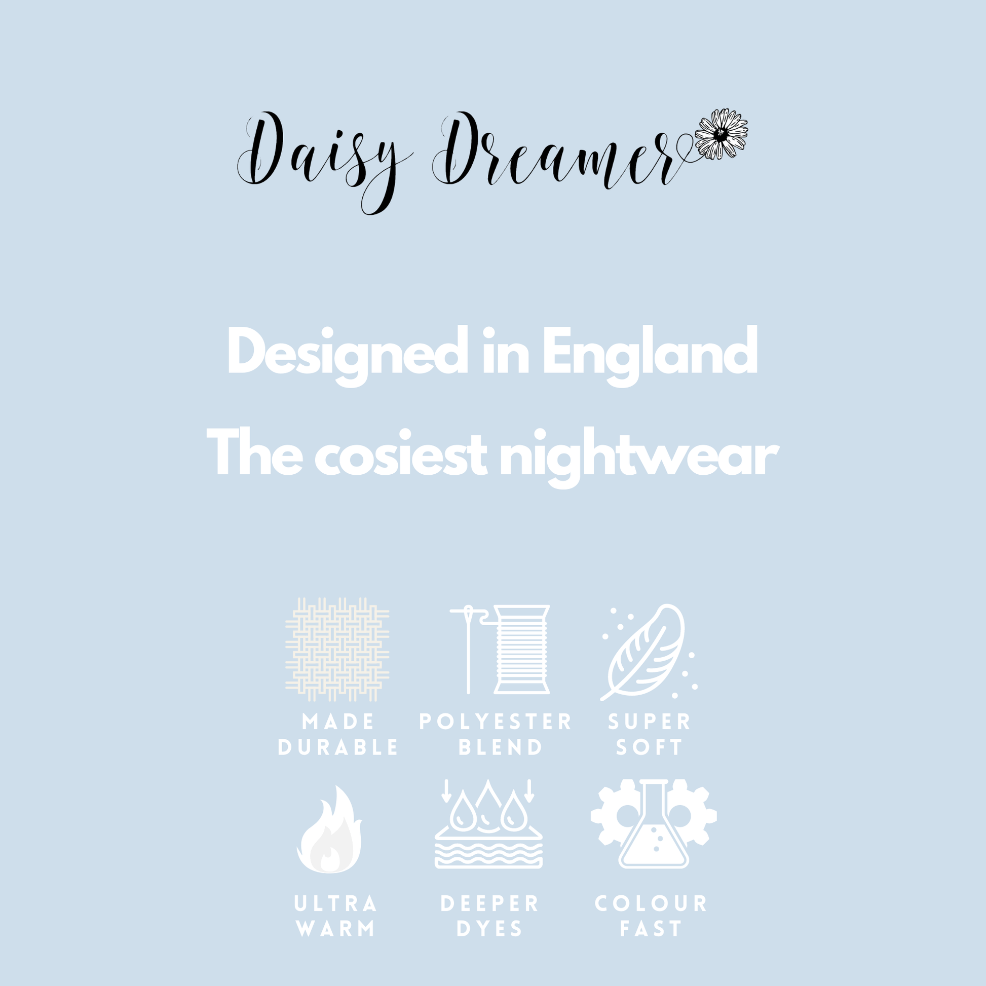 Description: Crafted from a beautiful, soft-touch plush flannel fleece teddy fabric, this pyjama set offers an ultra-soft and luxurious feel against your skin. The material is 100% polyester, ensuring durability and ease of care.